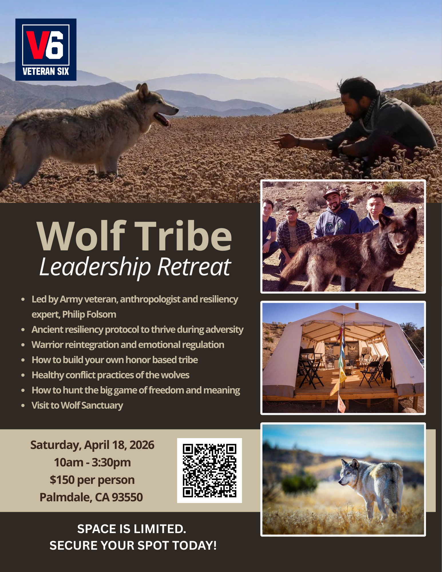 Join us this April for a unique Wolf Tribe Leadership Retreat. Learn resiliency, thriving through adversity, emotional regulation, healthy conflict practice and much more. End your day immersed in the power of pack life at the Apex Wolf Sanctuary.